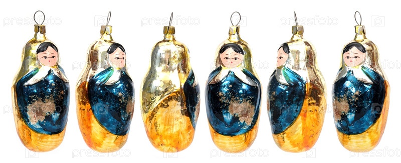 Стеклянная рождественская игрушка (как кукла), изолированная на белом фоне