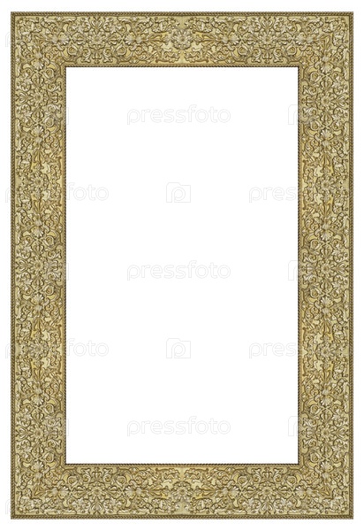 Золотая рама для картин, зеркал или фотографий, изолированных на белом фоне
