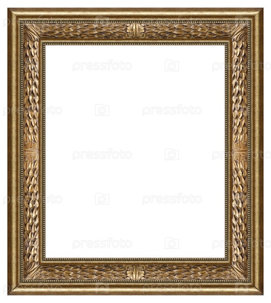 Золотая рама для картин, зеркал или фотографий, изолированных на белом фоне