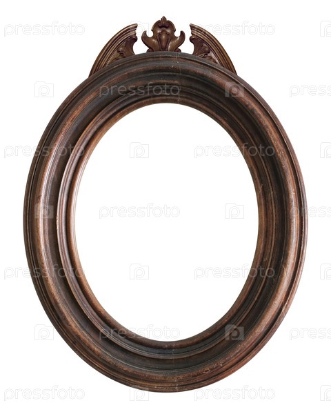 Деревянная овальная рама для картин, зеркал или фотографий, изолированных на белом фоне