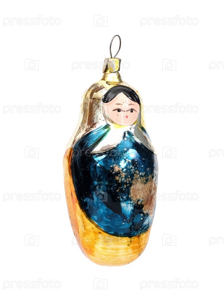 Стеклянная рождественская игрушка (как кукла), изолированная на белом фоне