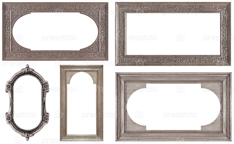 Набор серебряных готических рамок для картин, зеркал или фотографий, изолированных на белом фоне