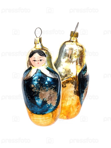Стеклянная рождественская игрушка (например, кукла) изолирована на белом фоне