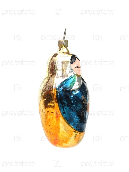 Стеклянная рождественская игрушка (как кукла), изолированная на белом фоне