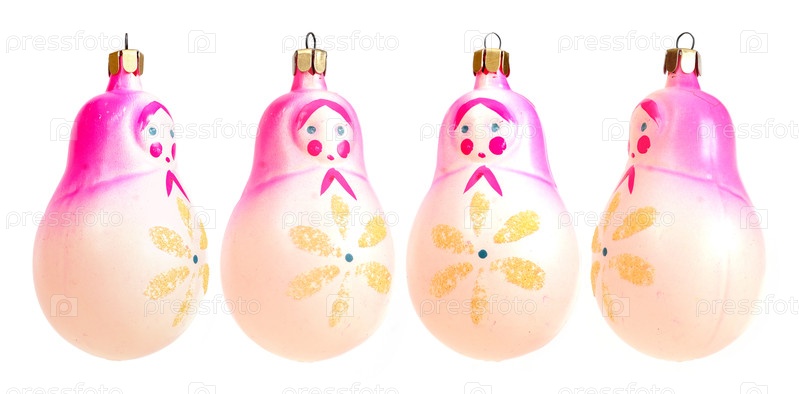 Стеклянная рождественская игрушка (как кукла), изолированная на белом фоне