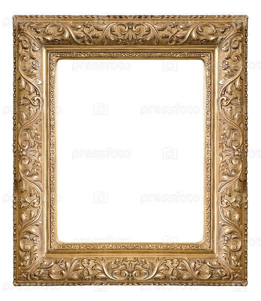 Золотая рама для картин, зеркал или фотографий, изолированных на белом фоне