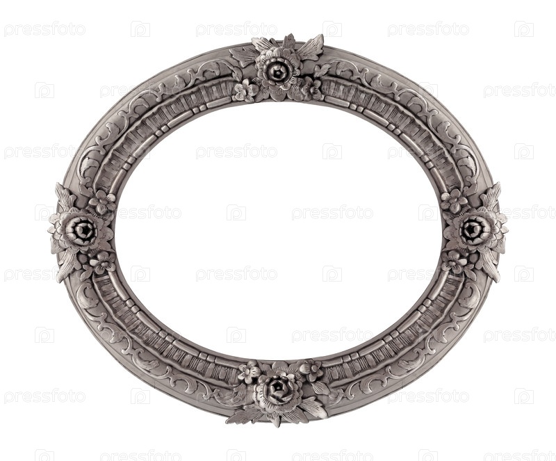 Серебряная овальная рама для картин, зеркал или фотографий изолирована на белом фоне