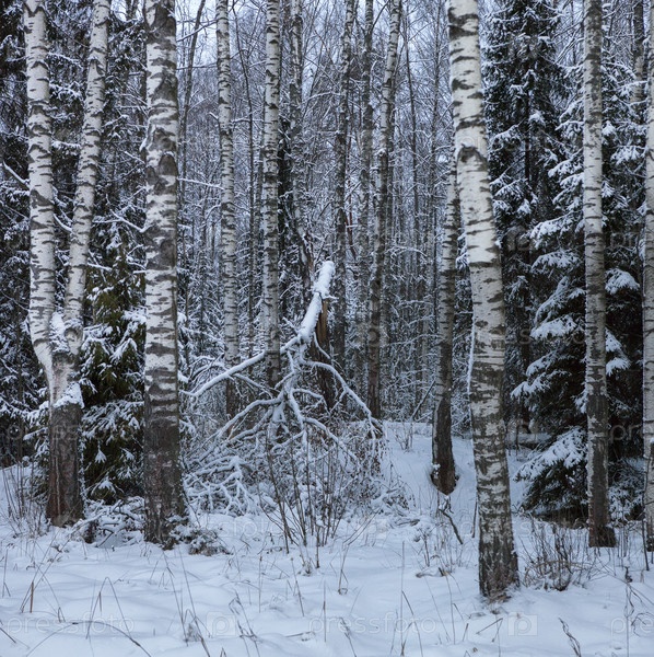 Хороший вид на холодный зимний лес со снегом и заснеженными деревьями