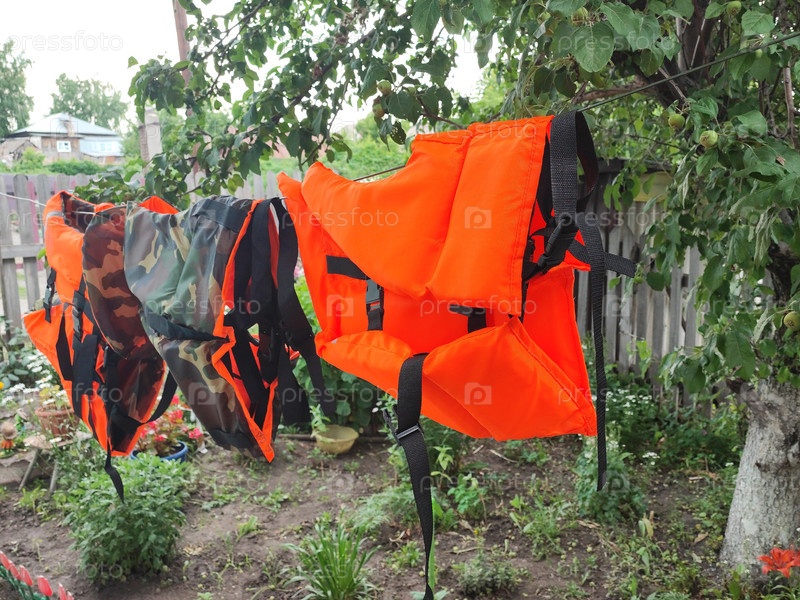 Спасательные жилеты сушат на веревке