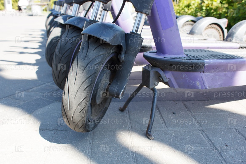 Аренда электрических скутеров на парковке в городе летом