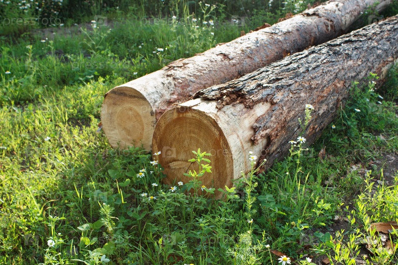 Сосновые бревна готовы к транспортировке, когда они вырублены на улице в летний день