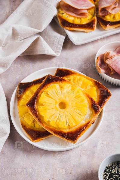 Сладкие домашние пироги с ананасом на тарелке на столе вертикальный вид
