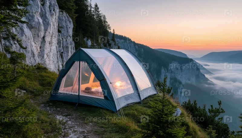 Туристическая палатка в горах Доброе утро, рассвет