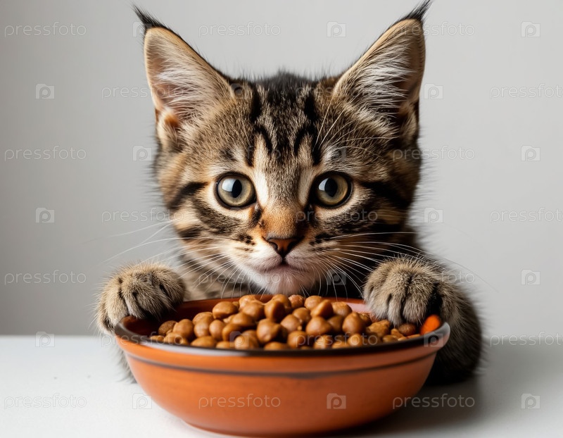 Котенок ест сухую пищу