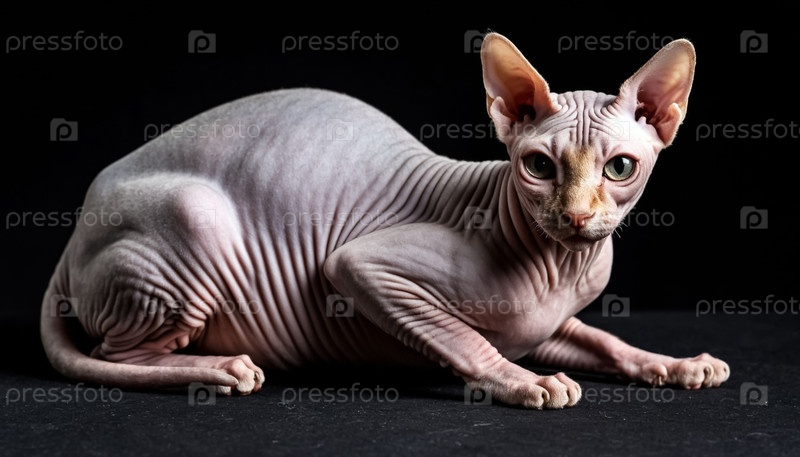 Египетский сфинкс-кошка на черном фоне
