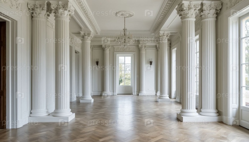 Белая комната с колоннами и штукатуркой. интерьер. генерация ИИ