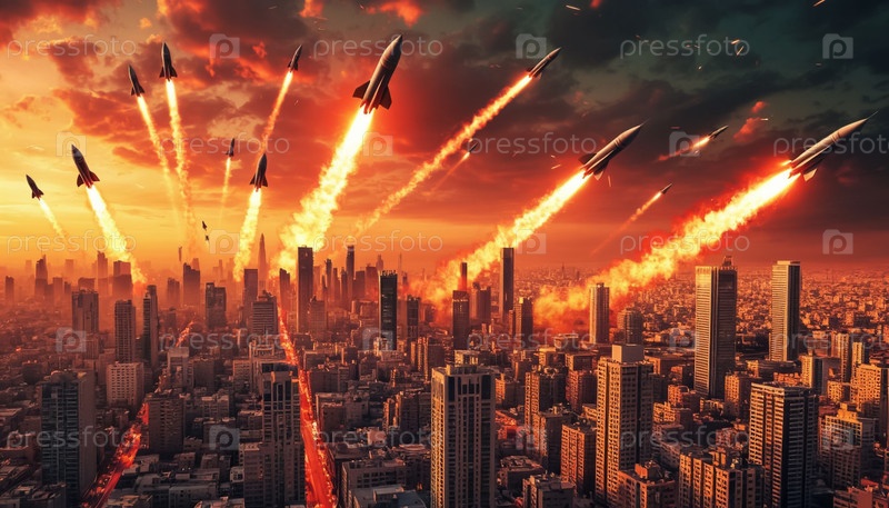 Военный конфликт на Ближнем Востоке.Война между Израилем и Ираном.Гиперзвуковые ракеты в небе над Тель-Авивом