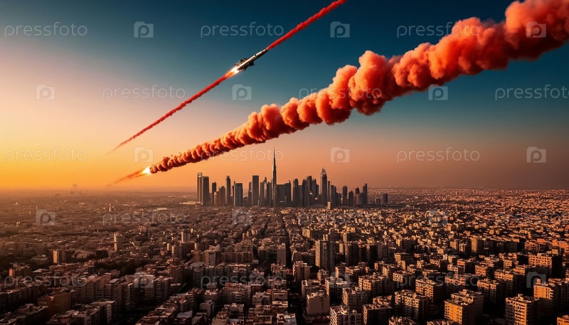 Военный конфликт на Ближнем Востоке.Война между Израилем и Ираном.Гиперзвуковые ракеты в небе над Тель-Авивом