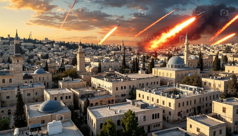 Военный конфликт на Ближнем Востоке. война между Израилем и Ираном. гиперзвуковые ракеты в небе