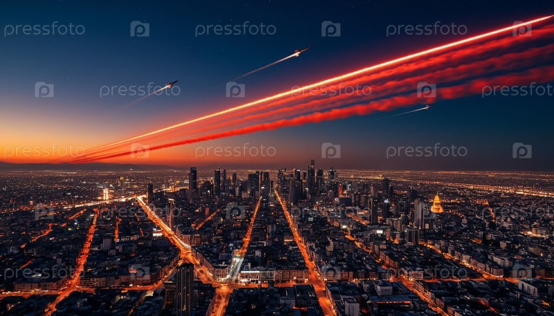 Военный конфликт на Ближнем Востоке.Война между Израилем и Ираном.Гиперзвуковые ракеты в небе над Тель-Авивом