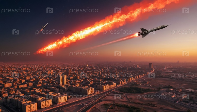 Военный конфликт на Ближнем Востоке.Война между Израилем и Ираном.Гиперзвуковые ракеты в небе над Тель-Авивом