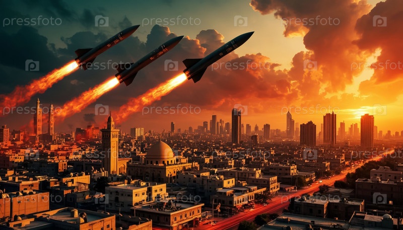 Военный конфликт на Ближнем Востоке.Война между Израилем и Ираном.Гиперзвуковые ракеты в небе над Тель-Авивом