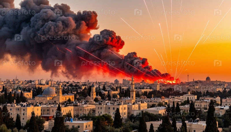 Война на Ближнем Востоке.Ракеты пролетают над Иерусалимом