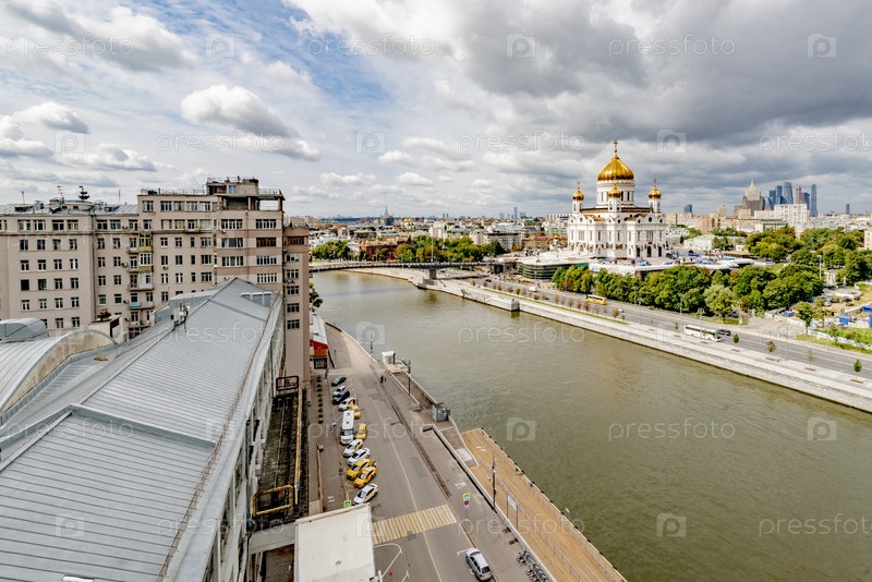 Вид на Пречистинскую дамбу и собор Христа Спасителя