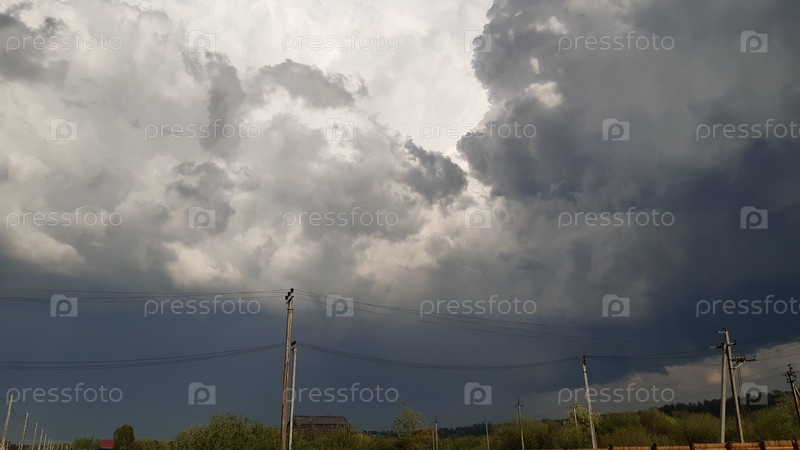 Темные грозовые облака собираются над сельским ландшафтом, намекая на приближение дождя в конце дня