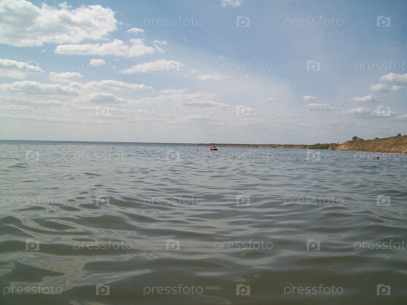 Спокойные воды в солнечный день с отдалённым каноэстом, наслаждающимся спокойствием природы
