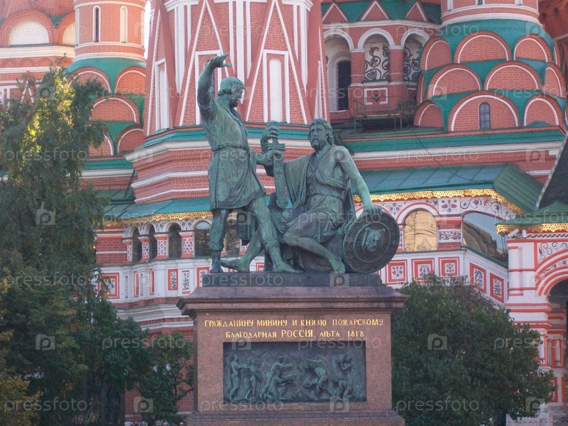 Исторический памятник русским героям, демонстрирующим мужество перед знаменитым собором в Москве в солнечный день