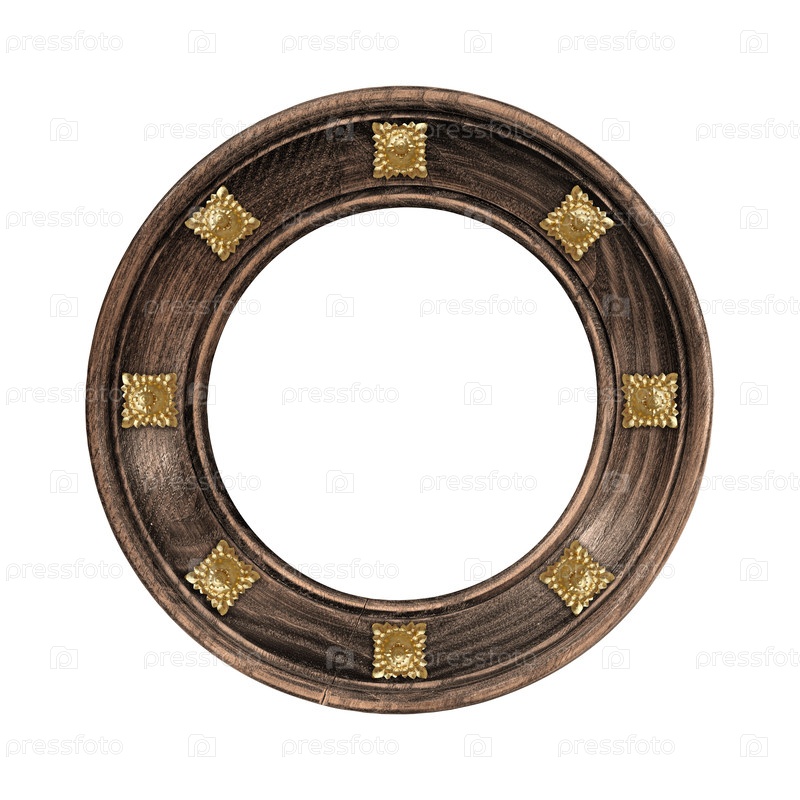 Деревянная круглая рама для картин, зеркал или фотографий, изолированных на белом фоне