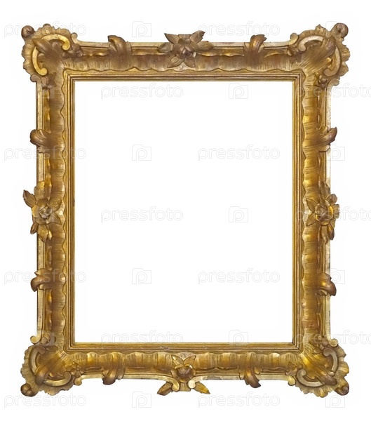 Золотая рама для картин, зеркал или фотографий, изолированных на белом фоне