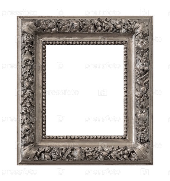 Серебряная рама для картин, зеркал или фотографий, изолированных на белом фоне