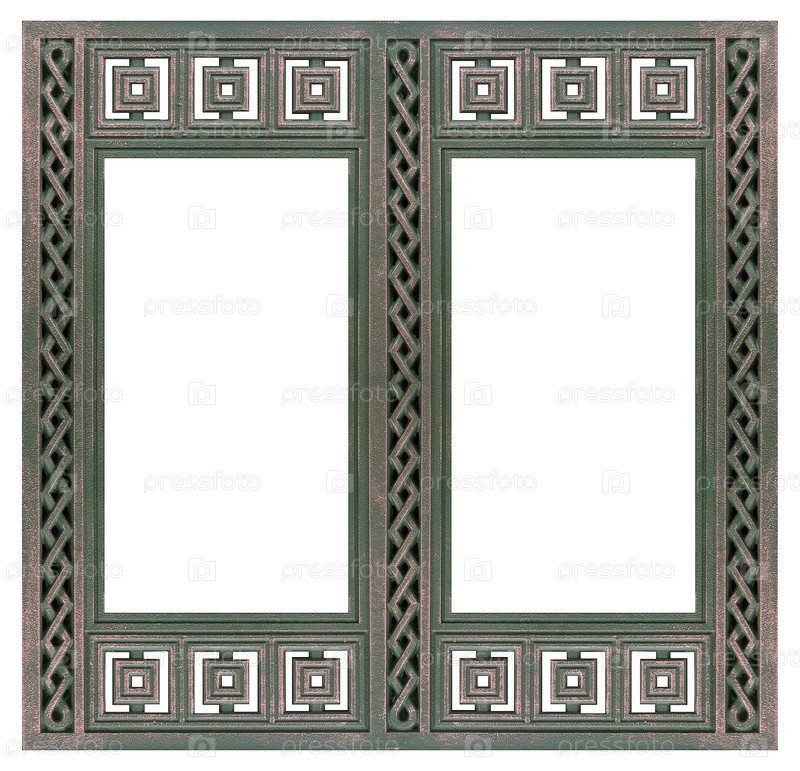 Двойная бронзовая рама (диптих) для картин, зеркал или фотографий, изолированных на белом фоне