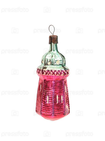 Стеклянная рождественская игрушка (как замок), изолированная на белом фоне
