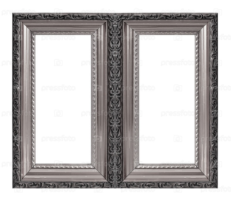 Двойная серебряная рама (диптих) для картин, зеркал или фотографий, изолированных на белом фоне