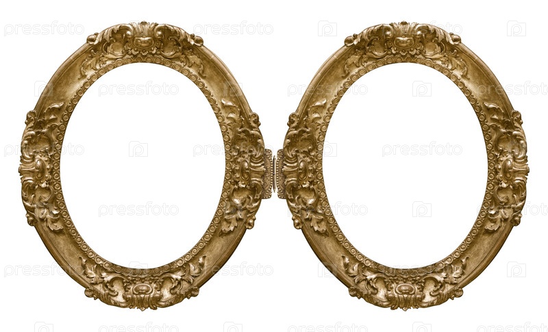 Двойная золотая овальная рама (диптих) для картин, зеркал или фотографий, изолированных на белом фоне