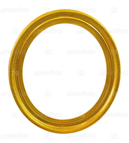 Золотая овальная рама для картин, зеркал или фотографий, изолированных на белом фоне