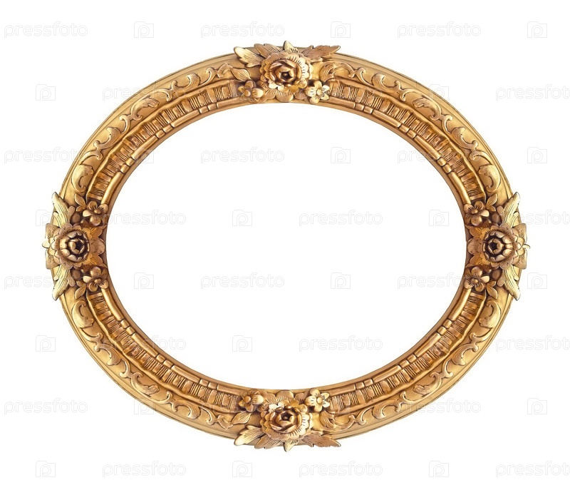 Золотая овальная рама для картин, зеркал или фотографий, изолированных на белом фоне