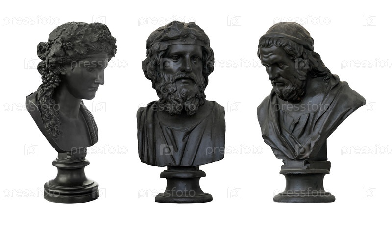 Бронзовый бюст древнего ученого (драматура) изолирован на белом фоне