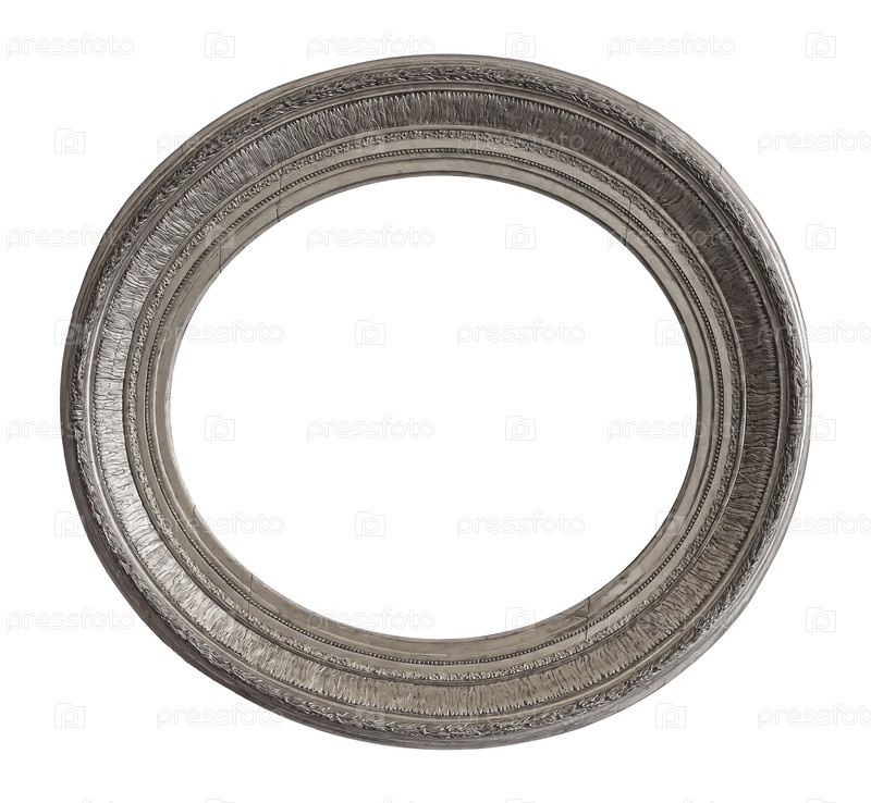 Серебряная овальная рама для картин, зеркал или фотографий, изолированных на белом фоне