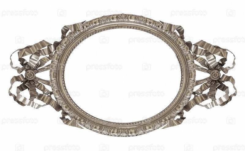 Серебряная овальная рама для картин, зеркал или фотографий, изолированных на белом фоне