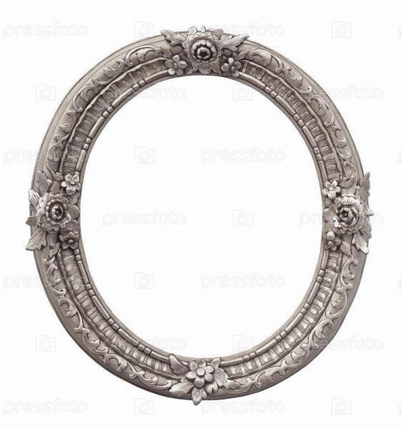 Серебряная овальная рама для картин, зеркал или фотографий, изолированных на белом фоне