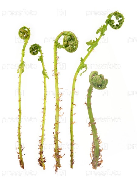 Молодой раскачивающийся папоротник изолирован на белом фоне, отрезка готова