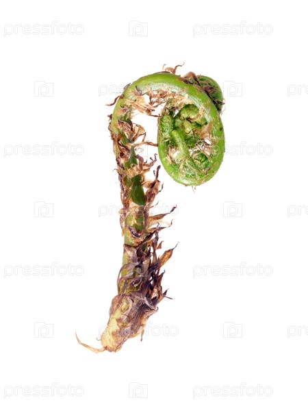 Молодой раскачивающийся папоротник изолирован на белом фоне, отрезка готова