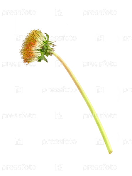 Полностью цветущий желтый одуванчик, изолированный на белом фоне, вырез шеи готов