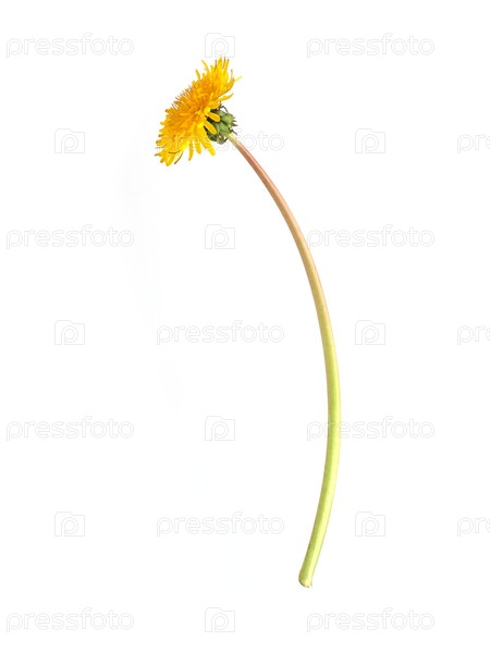 Полностью цветущий желтый одуванчик, изолированный на белом фоне, вырез шеи готов