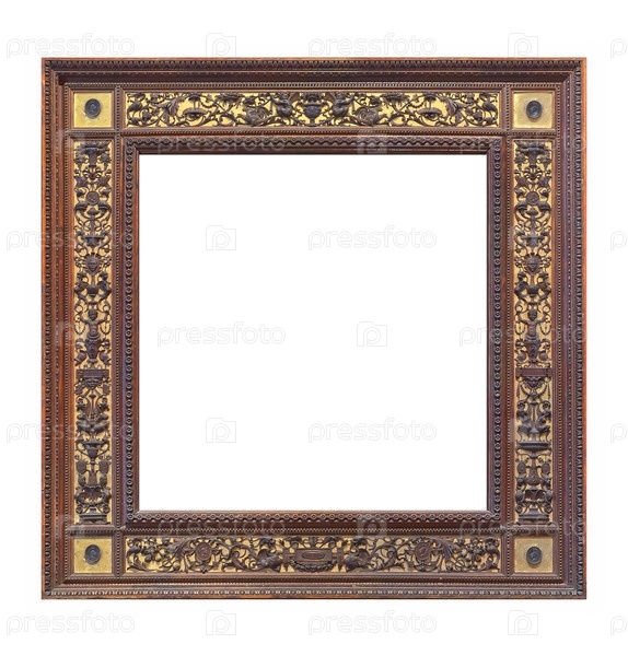 Деревянная рама с золотыми ренессансными орнаментами для картин, зеркал или фотографий, изолированных на белом фоне
