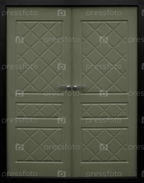 Модель двойных металлических входных дверей, изолированной на белом фоне